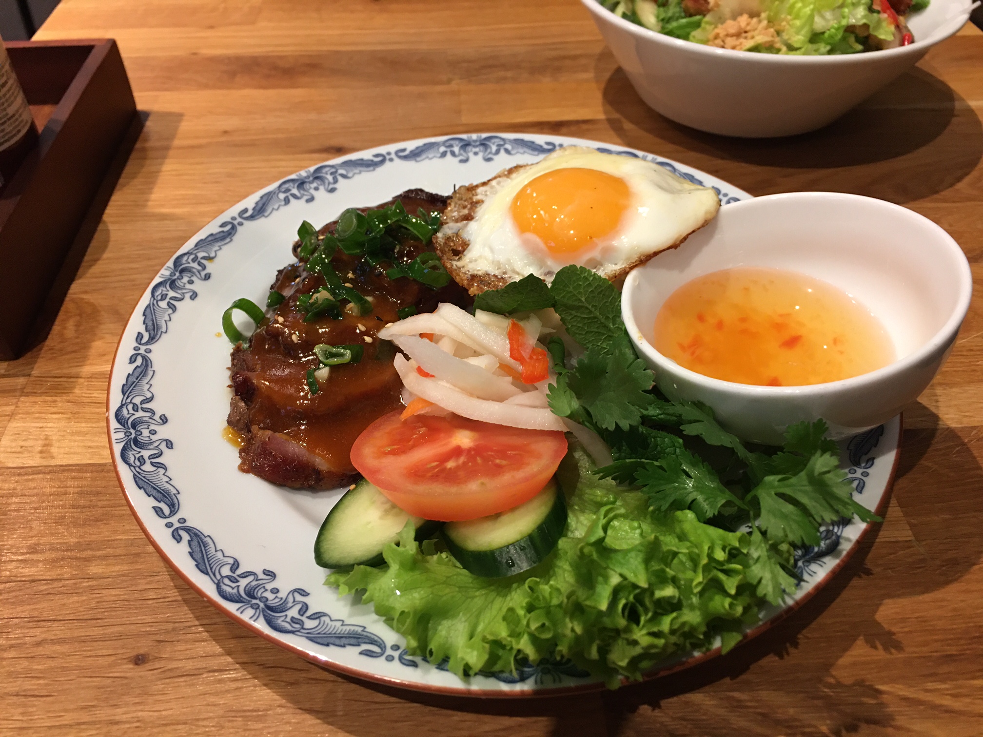 3- Vietnamesiskt BBQ fläsk – ägg ris, örter, fläsksås